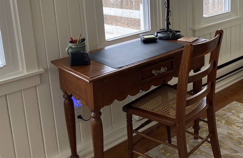 Our cottage has a full kitchen, comfy living room and bedroom with electric adjustable bed. It’s located on 8 partially wooded acre with our home giving you the feel of the country with all the convinces of the city close by. It has it’s own garage.