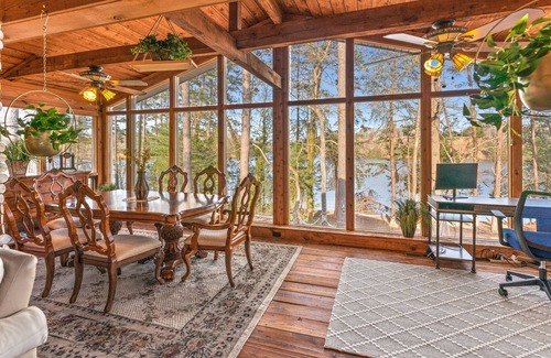 Nestled on the shores of Lake Lanier, this 3BR 3Bath cabin boasts modern amenities and resort comforts, enriched by the incredible lake views. Take in the scenery from the two sunrooms and the spacious deck, explore the lake and the picturesque region, and then retire to the gorgeous cabin that will keep you coming back!