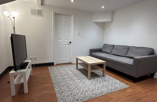 Spacious and clean 2-bedroom basement suite with private entrance in a safe, quiet neighborhood. Enjoy a fully equipped kitchen, cozy living area with smart TV, high-speed Wi-Fi, and private laundry. Close to Wonderland, transit, shops, and hospital. Perfect for families, friends, or business stays — comfort, privacy, and convenience all in one!