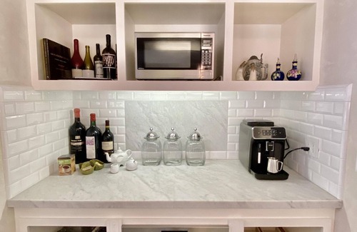The expansive eat-in kitchen serves as a central gathering spot, fully equipped with everything needed to prepare delicious Wine Country meals. Start your mornings with fresh lattes from the Philips coffee system and wind down each evening with wine from the well-stocked wine bar and refrigerator.