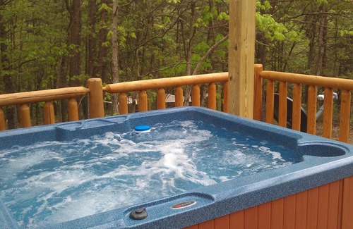 Secluded in the trees off the beautiful Libby's Ridge, and no neighbors in sight, this 1BR, 1BA Log Cabin is a terrific couple's getaway for rest and relaxation. Hot tub on the cedar deck with professional weekly hot tub service. Two hammocks in season add to this great couple's getaway. Porch swing on the front porch and small Weber charcoal grill and firepit in back yard. Flat screen TVs in both the LR and bedroom. Comfortable queen bed in BR and full size futon in LR. Watch the stars at night from the hot tub and wake up to birds singing in the morning. You will want for nothing except you won't want to leave!