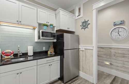 The lower level features two king en-suites with luxurious walk-in showers complete with rain heads and body sprayers. Both bedrooms have pristine beach views and have sliding glass doors that lead straight out to the Tiki bar area, BBQ, and dune walkover - leading you right to the white sands of the Gulf of Mexico.
