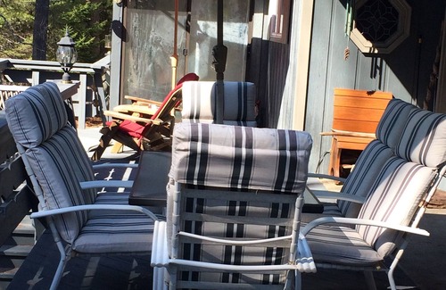 1 bedroom with King bed, TV in bedroom. 1 Queen bedroom, 1 bedroom with 2 twin beds, pullout Queen sofa in front of fireplace and pull out twin in TV/Game room. Living Room, Dining area and Laundry room. Last house on a dead end road, hiking trails start at end of driveway. Large front porch with grill, dining area and 3 season room. Fireplace in living room, stone fire pit back yard. A/C, ceiling fans, washer/dryer, kitchen equipped to meet your needs. Horseshoe driveway front of home with a second driveway rear of home with easy access for anyone with physical limitations. Sit on the front porch, look up and enjoy the splendor of a star lit sky in the Adirondack Mountains.