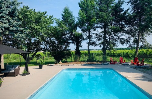 Set back amongst the vines, minutes from NOTL. A perfect Niagara getaway for any family and friends. Enjoy the pool, hot tub in the perfect wine country setting. Close to downtown shops, wineries and restaurants.