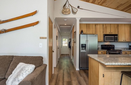 It’s Quittin Time! Time to kick back and relax in this lovely mountain retreat with guest access to Blue Lake Springs Rec Center/Snowflake Lodge and Fly-In Lake (guest fees apply). With 3 bedrooms, 2 full bathrooms, bonus/game room, hot tub, and spacious deck, there’s plenty of room for family and friends to enjoy the mountains together! Great room with vaulted ceilings and a cozy wood stove, adjacent dining and fully-stocked kitchen. The downstairs bonus room is great for the kids with a 3-way game table, TV, Wii, PlayStation, lots of games and a gas log stove. Outside is ping-pong on the patio, horseshoes, and the hot tub! Ample and level parking to top it all off!