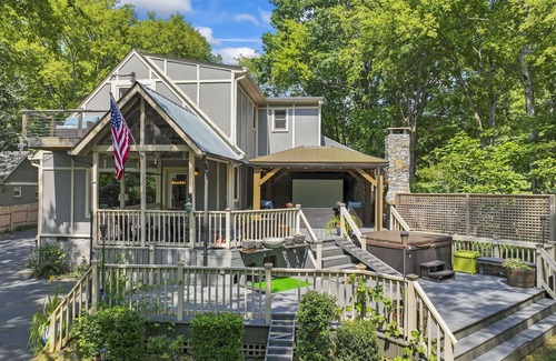 This 1930's Tudor house on 1 acre gives you ultimate privacy AND you're only 5 miles to downtown Nashville. Enjoy TONS of space inside along with a private oasis outside featuring a hot tub, private creek crossing, Traeger grill, and much more!