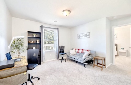 Recently upgraded and beautifully furnished throughout, this spacious and private four-bedroom home features an open floor plan with a modern kitchen, dining area, dedicated workspace, and a living room with 48” Smart TV.