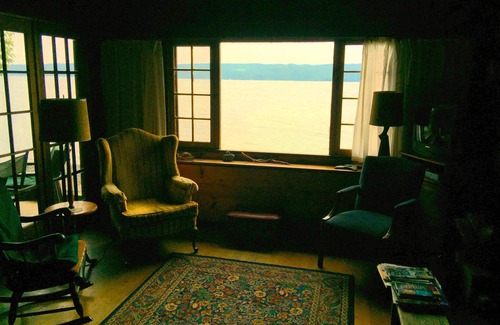 The cottage features a comfortable living area with a wood burning fireplace and a large picture window offering spectacular views of Cayuga Lake. French doors between the living room and porch provide an open and comfortable living space. A screened porch for relaxing and dining is right next to the kitchen's pass through window. Well-equipped kitchen includes coffeemaker, toaster, microwave, mixer, blender, etc.