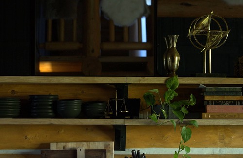 The property consists of the primary log cabin with 1 full bathroom, 1 bedroom with king bed, and 1 loft bedroom with king bed. On the main floor is the kitchen and living room with indoor/outdoor deck access. There is central heating, central AC, electric wall heaters, and a wood stove. The deck off the main house leads to the raised pathway which takes you to the spa and viewing deck. There is also a back patio off that deck with lounge furniture and an outdoor dining table.