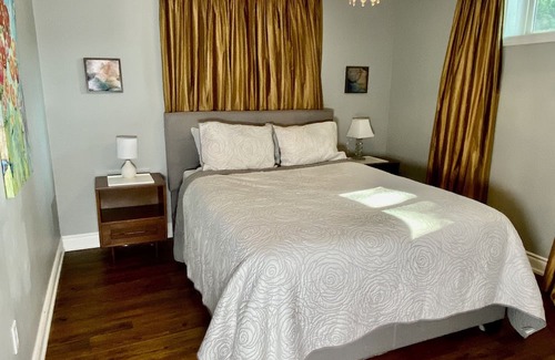 Our guests enjoy a pristine and private accommodation on the lower level, accessible via stairs (no elevator). This well-appointed space includes a full bathroom with luxury 5 foot shower, private laundry, a comfortable Queen-size bed, and a kitchenette complete with a fridge, stove, oven, coffeemaker, and microwave and any dishes or kitchenware you’ll need. The unit boasts keyless entry and a separate entrance, ensuring privacy. Set in a quiet and secure neighborhood, it offers easy commuting options to various destinations as well.