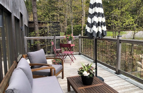 This contemporary house boasts forest views at every turn. Right from the house, you'll have direct access to a free flowing river with crystal clear water where you can swim or fly fish for small native brook trout or simply enjoy family time, right at your doorstep.
