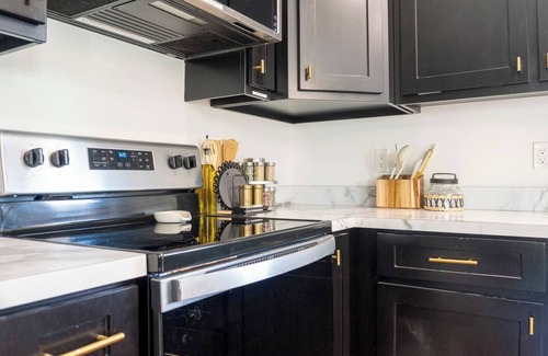 Kitchen: Equipped with stainless steel appliances, spices & seasonings, a selection of cookware and bakeware, as well as ziplock bags and plastic food storage containers for any leftovers. A coffee bar with a Keurig Duo, coffee grinder, and a hot water kettle. Not to mention decaf and regular coffee, hot chocolate, and tea options with sugar, sweeteners, creamers, and even honey sticks.