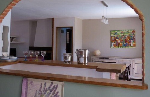 Composed on the ground floor of an air-conditioned dining room with sofa, television, giving access to the terrace and the swimming pool. A fully equipped open kitchen, dishwasher, oven, hob, refrigerator, traditional oven, microwave oven.