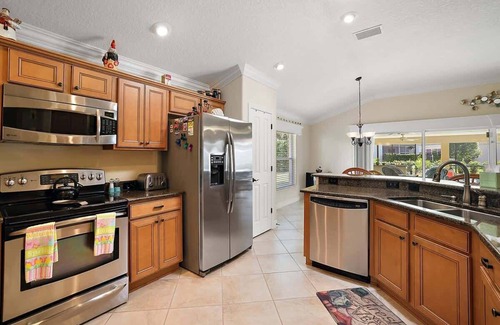 Getting around the Village of St. Charles is a breeze! A complimentary golf cart is included with your stay, providing easy access to all the amenities and attractions within The Villages. For those arriving by car, free parking is available in the garage and in the driveway.