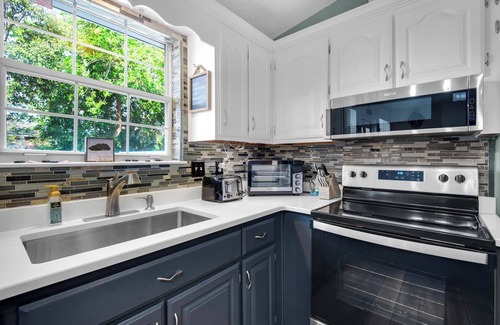 Welcome to Village Oasis! This gorgeous home boasts a well-equipped Kitchen and has plenty of room to take care of your family meals. The Living room offers plenty of seating for all and includes a new sofa bed. The Master Bedroom has a comfortable Queen bed with an En Suite Bathroom, the first Guest bedroom has a Queen bed, and the other Guest bedroom has a Full bed. There is 2nd bathroom conveniently located for easy guest access. Step into the romantic ambiance of the private back yard and take a dip in the pool. Enjoy the custom Tiki bar or simply relax in one of the comfy lawn chairs with a cool beverage in hand. With the world-famous beaches only 15 minutes away, you can play in the Emerald green waters of the Gulf of Mexico all day then come back to your private oasis and start making plans for your next stay!