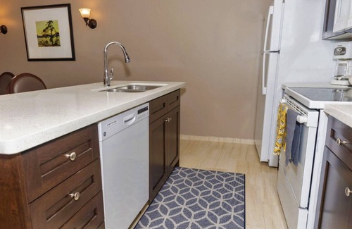 Beautiful one bedroom that comes with two TVs, jacuzzi ted, glass stand-up showers, large breakfast island, full kitchen, washer and dryer, spacious balcony, gas fireplace seating are and so much more.