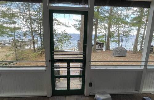 OCCUPANCY LIMIT 8 - NO PETS - SEBAGO LAKE BEACHFRONT. Classic four bedroom lakeside cottage overlooking Sebago Lake. Good size livingroom with fireplace to take the chill off a cool evening. Great screen porch overlooking water, beach area and beautiful view. Lovely sunsets. Short ride to shopping. Great swimming, boating and fishing. Hiking within a 20 minute ride. Great spot. Need additional sleeping for your group? Bundle with the Restawhile cottage. (see map location below).