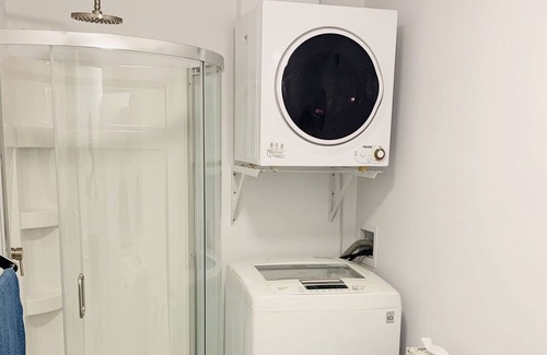 The guest suite with one bedroom, living room and kitchen setting on ground floor with private entrance. Modern styled includes all what you need for your stay. You’ll love the stylish decor of this charming place to stay. The bedroom has a Queen-size bed and gym. The living room includes a sofa and a Queen-size bed. The washroom has washer and dryer for your convenience.