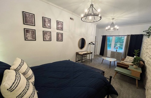 Cozy, quiet guest suite boasting stone walls and two queen sized beds. The home is about 15 minutes to any destination in Music City. The space is private & has a keyless entry through the door at the lower level of the home. You'll have access to the back yard with a fire pit and a creek. The bathroom, kitchen, and coffee bar are stocked with the necessities.