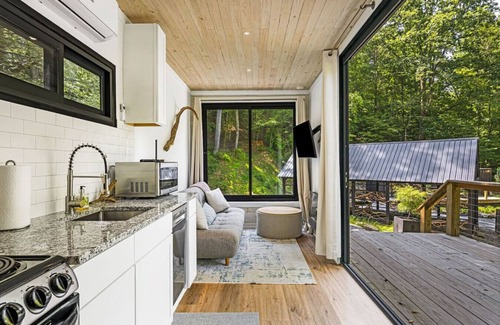 Immerse yourself in Nature in our luxury, custom built villa "Elevation" that provides a separate living room, kitchen, bathroom and bedroom. With custom doors and windows, you can truly open yourself to nature while still having the comforts of a 5star home. Located on the iconic Needmore Road and centrally located to all major area attractions, our resort provides convenience, comfort and safety for your stay in the mountains.