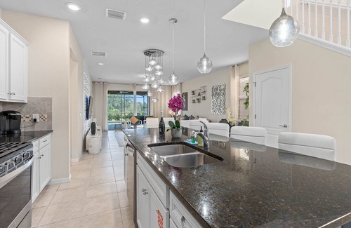 This gorgeous 6 bedroom, 4.5 bathroom vacation home rental is located in the beautiful Solterra Resort, Davenport, Florida! There is enough space for the entire family in this open, spacious, 2 story Disney area Vacation Villa Paradise. The location could not be any better. Only a few short minutes from Walt Disney World and Orlando's other famous attractions like Universal Studios, Seaworld, and Legoland, our Solterra Resort villa rental sits nestled off Interstate 4 and Hwy 27. Easy access to shops, restaurants, and world class golf. Solterra Resort is a secure gated community only moments from the magic but far enough to experience peace from the busy tourist district. Solterra Resort is 15 minutes to Disney with access to the Interstate only 3-5 minutes from the entrance.