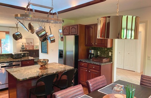 Guests have access to the entire home and property, except an owner's storage room and closets. Garage parking is not available