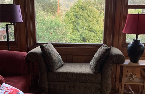 Very cozy A-frame home with great views from every window and two outside decks. House has modern amenities washer/dryer, central heating and A/C, Stainless Steel appliances in kitchen, wireless internet plus Dish TV. Located walking distance to redwoods, hiking or biking trails. Home is driving distance to many popular sites and places to visit, like local cheese making, olive farm, wine tasting and national parks.