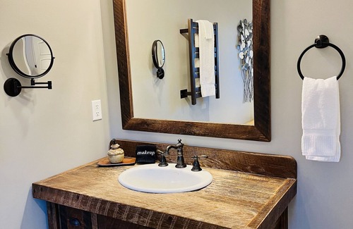 Location is everything! Enjoy a luxurious stay at this guesthouse located one block from downtown Brevard. Located at the former historic Red House Inn, this home has everything from a soaker tub, fireplace, towel warmer, kitchenette, rocking chair porch, king sized bed & pull out twin sofa. Only 1 block from Main St. shops/restaurants/coffee shops/music venues. The Ecusta Trail is also across the street. Cyclists are welcome to use our bike wash and access our private bike storage area.