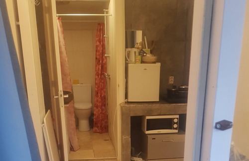 This is why even making easy meal and eating are possible, but it will not be comfortable, especially if you stay as 2 persons. There is no comfortable space for eating and no comfortable space for cooking since the place is very very small. Most of my guests, most of the time, buy food and eat outside. However the possibility to make easy meals and eat using folding table is there Which of course will be appreaciated during bad weather.