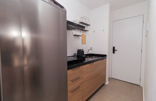 Studio with a super privileged location within the city and the center of Moema, it is close to the airport, park and numerous high-end shopping malls, in addition to having a complete and cozy space, with TV, large balcony, air conditioning, curtain with blackout and kitchen equipped with coffee maker, air fryer and induction stove. Everything you need for a wonderful stay.