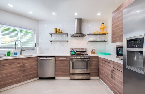 The front yard is private, fully fenced for kids and pups and features yard games like giant chess or checkers, cornhole and a putting green while enjoying stunning mountain views. Custom wall murals make the perfect IG-worthy moments. Review the pictures, feel free to ask any questions and book your next Palm Springs vacation!