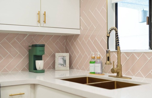 ✓ You will be stocked with an initial supply of trash bags, paper towels, kitchen sponges, hand soap, dish soap, dishwasher pods, toilet paper, laundry detergent, and dryer sheets.