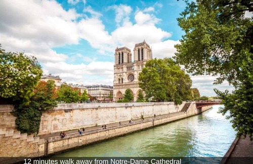 Located in the historical Île Saint-Louis. Once home to many writers and artists, this island was the centre of the “Vieux Paris”. Now praised by the locals, every street and street corner looks like a classical French movie set. Hugged by the Seine River you will be a few steps away from Notre Dame Cathedral, you will also find some of the beautiful Parisian landmarks and monuments on both sides of the river.