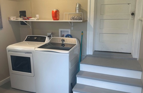 The Pedal Inn is located just off the beaten path, yet still walking distance to downtown Lake Geneva and many fabulous restaurants. Parking available for up to 7 cars. The home offers 4 bedrooms 2 upstairs with king size beds and 1 full bath, shower over tub. The main level has 2 bedrooms 1 with 2 sets of bunk beds, and 1 with a king size bed, a family room with a queen size sofa sleeper and a full bath, shower over tub. The fully stocked kitchen is complete with coffee maker, pots, pans, utensils, plates, and silverware.