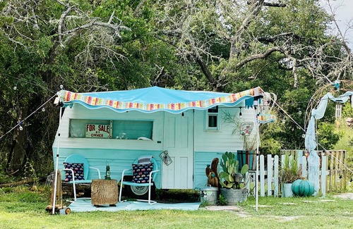 Queen B Glamper, Pool is located in Bandera. Queen B Glamper, Pool provides accommodation, featuring Fireplace/Heating, Internet, Kitchen, among other amenities. This House features Fireplace/Heating, Internet, Kitchen, to make your stay a comfortable one.