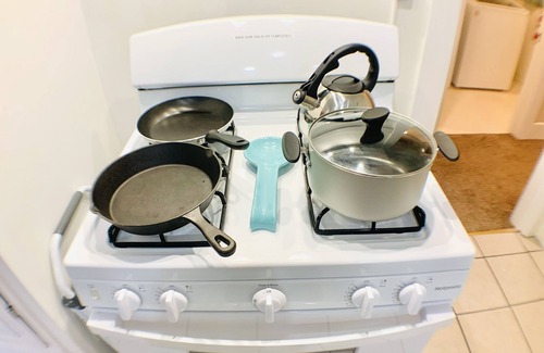 A private unit located near downtown, businesses, and hospitals. Relax in this spacious 2 bed 1 bath unit on the 1st floor in a grand building with 100-year history. Sleeps up to 5 guests with a Queen/Full/Twin bed. Fully furnished with a 65" smart TV with Prime Video and YouTube TV, new retro refrigerator, microwave, Blender, coffee maker, washer/dryer, and kitchen/bath room essentials.