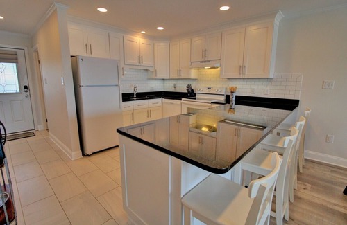 The master bedroom is located oceanfront and has a King bed and a large updated private bath. Sliding glass doors off the master bedroom also provide access to the oceanfront deck. Bedroom two, located on the sound side of the unit, has a queen bed and a bunk bed with two twin beds that boasts a beautiful sound view from the window. Bedroom two also has a sliding glass door out to the large front deck overlooking the sound and boat dock. Extra care has been taken to ensure you feel right at home while a guest at this property, making it a great value for such a beautiful getaway.