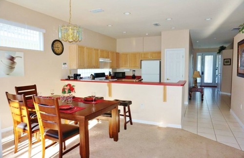 Your family will love the ample space in this four-bedroom villa, with a fully equipped kitchen and dining room. The home offers a King bed in the master bedroom with an in-room bathroom and soaking tub. The family room s flat screen TV and complete entertainment center will give you a place to unwind after a day at the parks. Our management staff will be on hand to ensure you are comfortable and have everything you need to make the most of your Orlando vacation!