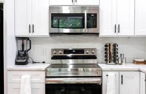 The house is equip with two queen beds and a bunk bed with an extra trundle bed. TV in each room and a designated game area for board games and other family activities. Brand new mini split for heating and cooling. Enjoy modern amenities in nature.
