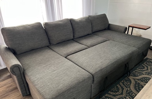 Cozy, quiet 4 bed, 2 full-bath home located 1 mile from the Payne County Fairgrounds. House newly updated with flooring, countertops, paint and decor. Beds, linens, pillows, desks, dressers, mirrors in each room (walk-in closets in 3 rooms). Enjoy 1 acre of fenced yard and fruit trees. Inside, enjoy a full Kitchen with we fridge/freezer, water/ice maker, convection oven, microwave, farm sink, large island table and full pantry. Enjoy a laundry room with a full-size washer and dryer. Sofas in living room convert into beds for additional functionality and to top it off, chair hammocks on the front porch welcome guests to rest! Enjoy easy access to all Stillwater has to offer: 2 minutes from Payne County fairgrounds, 8 minutes from town, 8 minutes from Sparrow Beginnings Venue, and 6 miles from OSU. The property is equipped with a front-door video doorbell for security purposes.