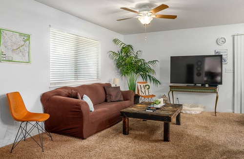 This home sits in the back of a private residence perfect for relaxing. The home has all the amenities to enjoy a short term stay or a long term stay. Big screen TVs in each room will allow for plenty of entertainment. Inside laundry room makes your stay convenient at all times. Quiet home perfect for sleeping at night or during the day if your job requires it. Super hosts manage this home with care and guarantee a plesant stay.