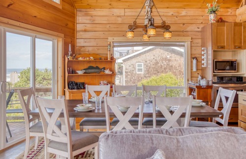 Quiet Depoe Bay Oceanview Log Home, Three King Bedrooms, Games and Firepit! is located in Lincoln Beach. Quiet Depoe Bay Oceanview Log Home, Three King Bedrooms, Games and Firepit! provides accommodation, featuring View, Security/Safety, Child Friendly, among other amenities. This House features View, Security/Safety, Child Friendly, to make your stay a comfortable one.