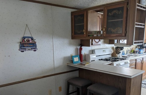 My Daughter and I are breaking free and becoming strong and self-efficient people! We own this quiet Mobile home, with lots of space to relax and be yourself. There is a nice hang out on the porch with a bbq and fire pit. There are several places for you to use as a work space. The two full bathrooms, and three bedrooms allow up to 6 to sleep comfortably. I have Wi-Fi and basic cable to the two large TV's. There is an electric fireplace in the living room for those cold nights when you want time to just snuggle down and be cozy. It is a work in progress and I will always be adding new additions to what is there!