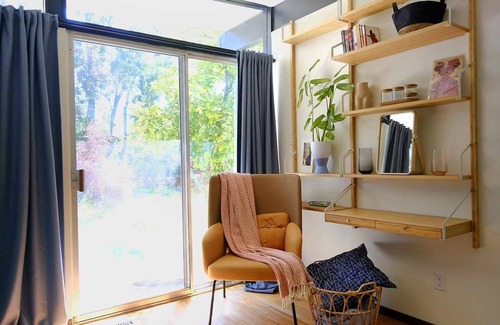 Welcome to the historic Streng Mid-Century Modern home, located in a peaceful, family-friendly neighborhood in the suburbs of Sacramento. We are approximately 20 minutes from downtown Sacramento and 15 minutes from historic Folsom. Our recently remodeled home features an open-concept design with a chef's kitchen on one side and a dedicated workspace overlooking an open greenspace on the other. Guests can relax in any of our three bedrooms. The main bedroom includes a walk-in shower with rain shower heads and a king-size bed. The garden room has two twin beds and offers a beautiful view of our garden, which is filled with color depending on the time of year. The third bedroom includes a full bed and is a serene space to enjoy a book or take a midday nap. We also have a fourth room with board games for family time. Guests also have access to our laundry room, which includes an elliptical trainer. The kitchen consists of all the basics. Coffee lovers will enjoy our automatic espresso machine or drip brewer, and cooks will find an induction cooktop and oven that can handle any recipe. Stepping outside, guests will find an outdoor seating area and swing that looks out to our fruit garden. Guests can enjoy fresh pomegranates, figs, cherries, and citrus. Whether you're planning a weekend getaway in Sacramento or an extended work stay, our house is perfect for you. Whether you're planning a weekend getaway in Sacramento or an extended work stay, our house is perfect for you. We have a STR permit #STRP2023-00173.