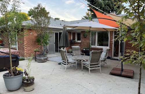 Mid century gem located in the heart of historic East end on a quiet cul de sac street just .7 miles to St Luke’s, 1.2 to downtown and .7 to the greenbelt. Two minute walk to foothill trail. The home has a living room as well as a family room with large glass doors overlooking patio and private back yard. Well stocked kitchen. Private room for office or computer work. Lots of original art. Blackout curtains in all bedrooms, newer mattresses on the firm side with 100% cotton sheets. Full laundry room. 2200sf. Clean and bright.