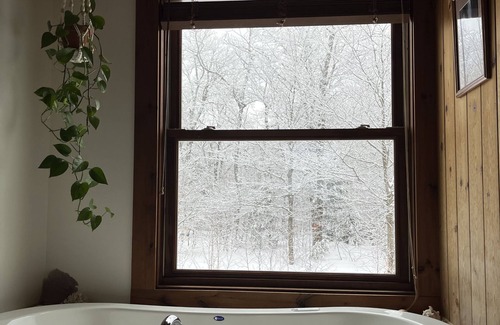The house is small and cosy. It is situated on top of the highest mountain in Val-David.