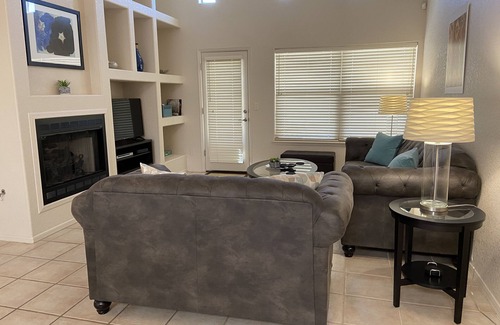 Contemporary home with natural light and high ceilings, a study and 2 car garage. A courtyard is off of the living room. The backyard has an in-ground pool (open May to October) and a basketball court. Restaurants, stores and hospitals are nearby. White Sands National Park is a 90 minute drive.
