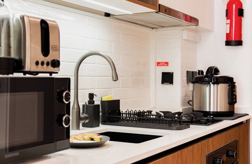 - FULL KITCHEN – Cook with ease: oven, toaster, blender, coffee maker