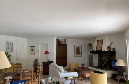 House ground floor, air-conditioned, quiet and friendly where we hear the birds and cicadas and where our friends the animals are welcome.