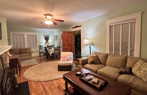Spacious 2 1/2 story home with Piano, fireplace, and bar/lounge. The two upstairs bedrooms can be configured with King-sized beds for couples or extra-long twins for singles. The relaxing front porch has daybeds that can sleep two additional guests. Please let us know your preferred bed configuration upon booking.